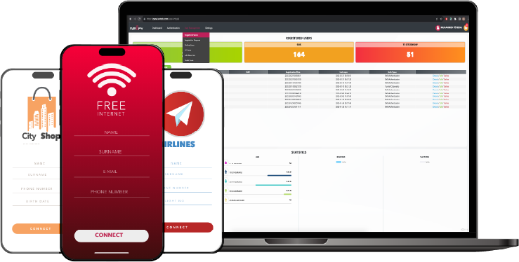 Turn your practical, easy and secure internet access into an ad platform. Measure your guests, visitors with the right values.